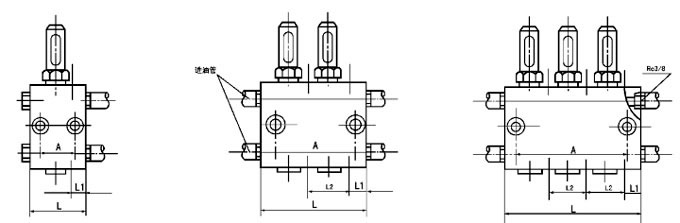 3、給油器的兩個(gè)進(jìn)油口分別與兩條供油管連接,且兩側(cè)是貫通的,某一側(cè)的進(jìn)油口不使用時(shí)應(yīng)用R3/8螺塞封堵。