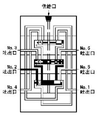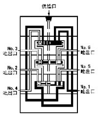 4、流入的潤(rùn)滑劑推動(dòng)活塞A向左移動(dòng)、左腔的潤(rùn)滑劑壓向NO.3吐出口經(jīng)外部配管送向潤(rùn)滑點(diǎn)。當(dāng)活塞A運(yùn)動(dòng)至左極限時(shí)活塞C右腔開(kāi)始進(jìn)入潤(rùn)滑劑。 |