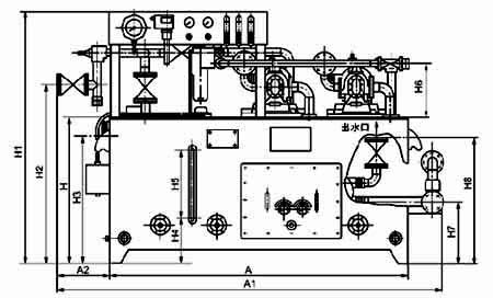 4、型號后帶“A”者為有壓力罐的裝置,可滿足發(fā)生意外事故或突然停電時,儲存在壓力罐中的油液可作臨時壓力油源向系統(tǒng)短時供油,但需注意壓力罐上的一般單向閥應(yīng)水平安裝,不得向下安裝(對較小的旋啟式單向閥允許向上安裝),附圖中應(yīng)作相應(yīng)改變。