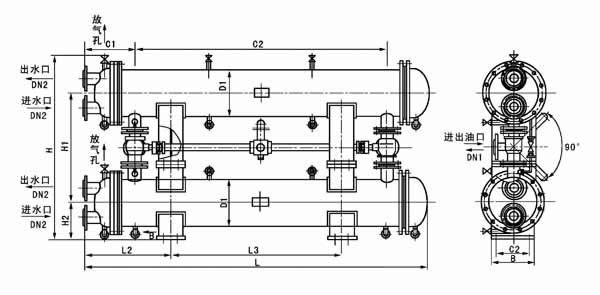 2、冷卻器安裝通常為臥式,如用戶需要時(shí)可采用二種立式布置,一種進(jìn)水室在下、另一種進(jìn)水室在上,便于管束拆卸。