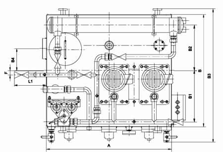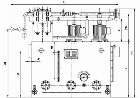 ≥250L/min稀油站,采用蒸汽加熱油箱中的潤滑油,儀表盤尚多一檢測(cè)冷卻器進(jìn)出水管壓差的儀表,其主要部件均另外裝于基礎(chǔ)上;而≤125L/min稀油站的全部部件都裝在油箱上,為整體式結(jié)構(gòu)。 |