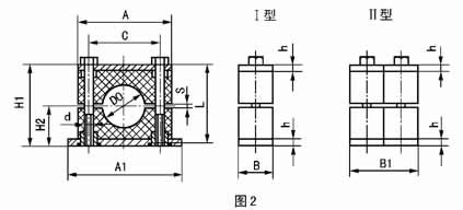注:當管路介質(zhì)壓力較高時,可選用B系列I型和II型,但需縮小相鄰管夾間距。 |