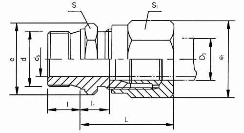 公稱壓力J級,管子外徑D0為14mm的卡套式端直通管接頭: