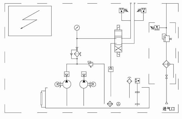該站主要由油箱(帶電加熱器、液位計、電接點(diǎn)溫度計、空氣濾清器、液位控制器)、兩臺高壓油泵裝置(一備一用)、溢流閥、電磁閥、過濾器、壓力控制器以及氣動三聯(lián)件和PLC電氣控制柜等組成。在電動機(jī)的牽引下油泵工作,從油箱內(nèi)吸入潤滑油加壓排出,途徑單向閥、過濾器和三位四通電磁閥后向雙線系統(tǒng)管線供送。正常工作時,一臺高壓油泵常開工作,另一臺備用,可通過電氣轉(zhuǎn)換開關(guān)來選擇使用,并可通過按鈕開關(guān)人工啟動和停止油泵。PLC電氣控制箱對油氣系統(tǒng)實(shí)行程序化全自動控制,還可向主控室提供系統(tǒng)“運(yùn)行”、“停止”、“故障”等遠(yuǎn)程信號接口。 |